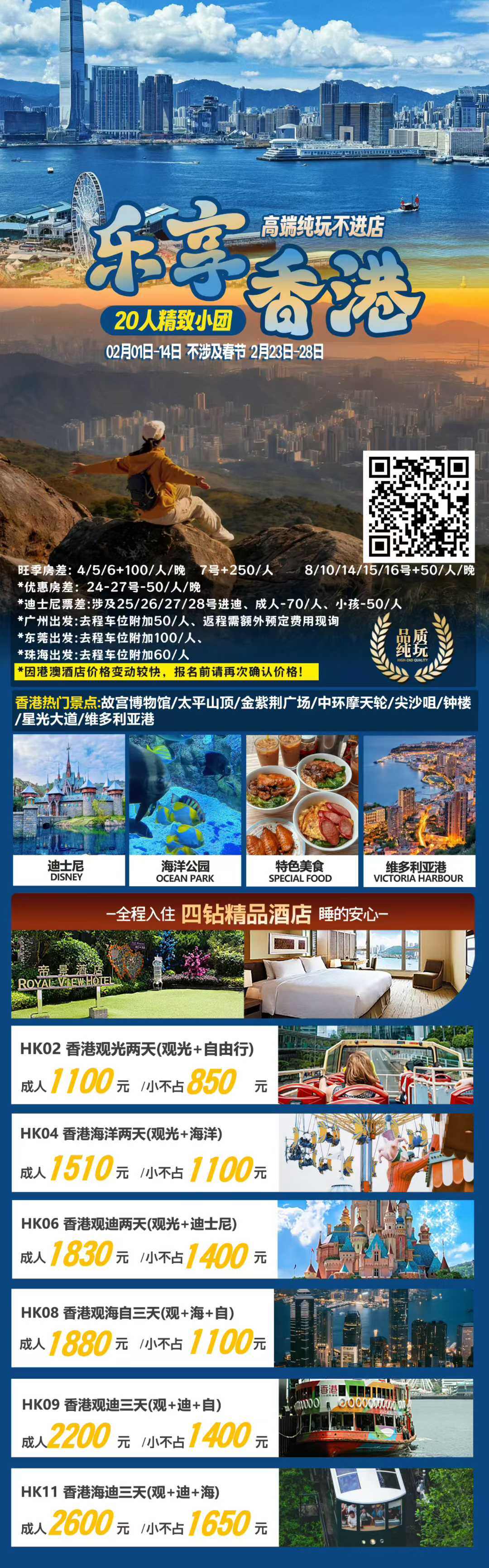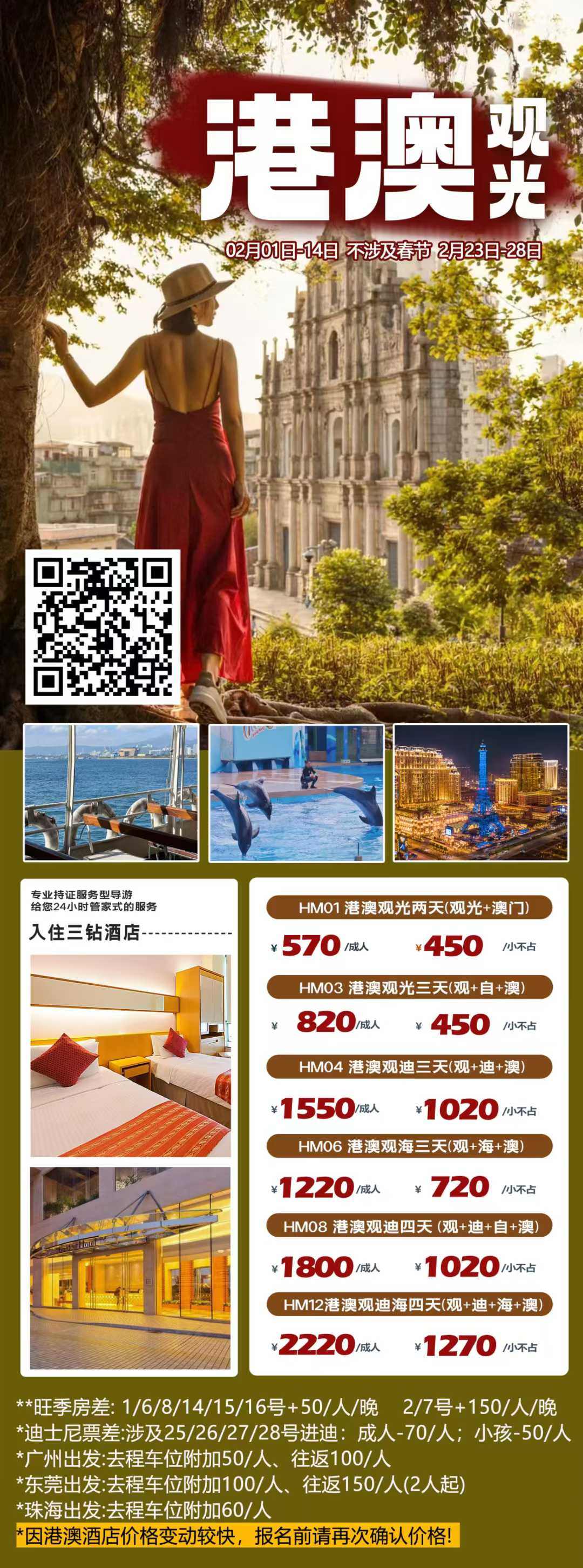 其他城市出发时间与地点可咨询客服,港澳旅游行程灵活,随时可订。